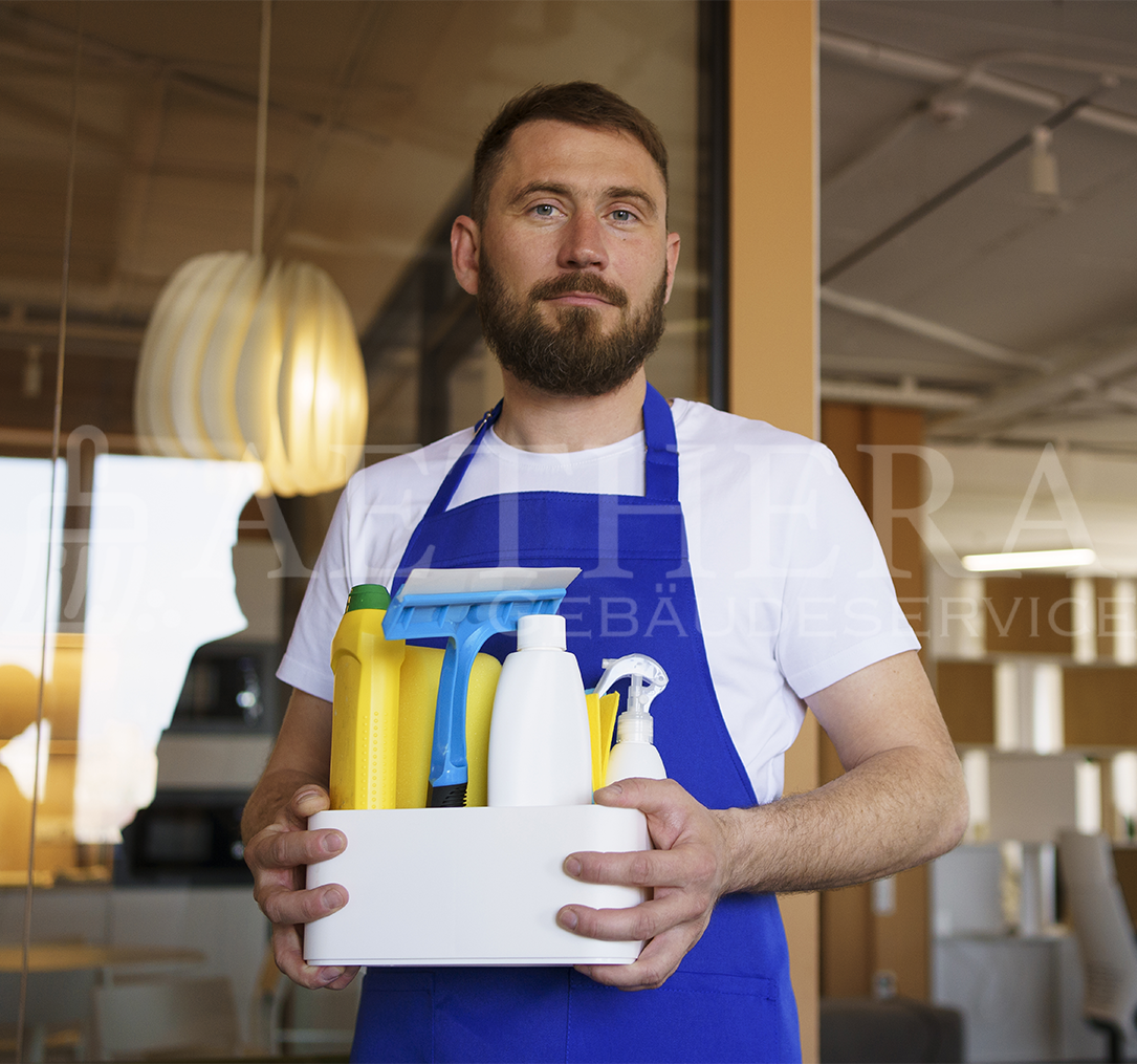 Sauberkeit, Diskretion und Effizienz für ein gepflegtes Arbeitsumfeld – mit umweltfreundlichen Reinigungsmitteln.